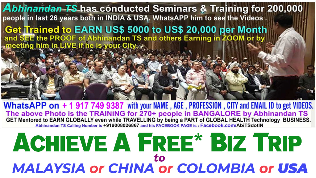 | People from other COUNTRIES when you EARN above US$ 7000 starting the GLOBAL EARNING BUSIBNESS with US$55 in your equilvalent Currency of your COUNTRY you can ACHIEVE a FREE* Business TRIP to INDIA or MALAYSIA . |